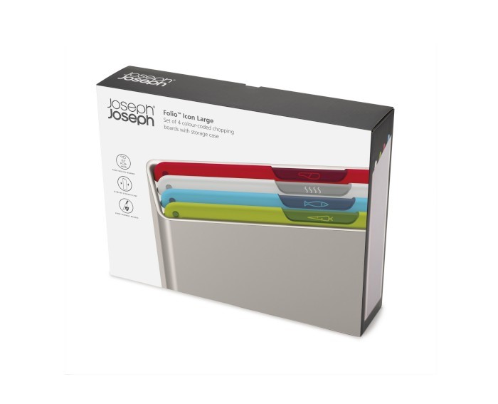 - każda deska ma inny kolor odpowiadający konkretnemu rodzajowi żywności z ikonowym oznaczeniem na uchwytach,