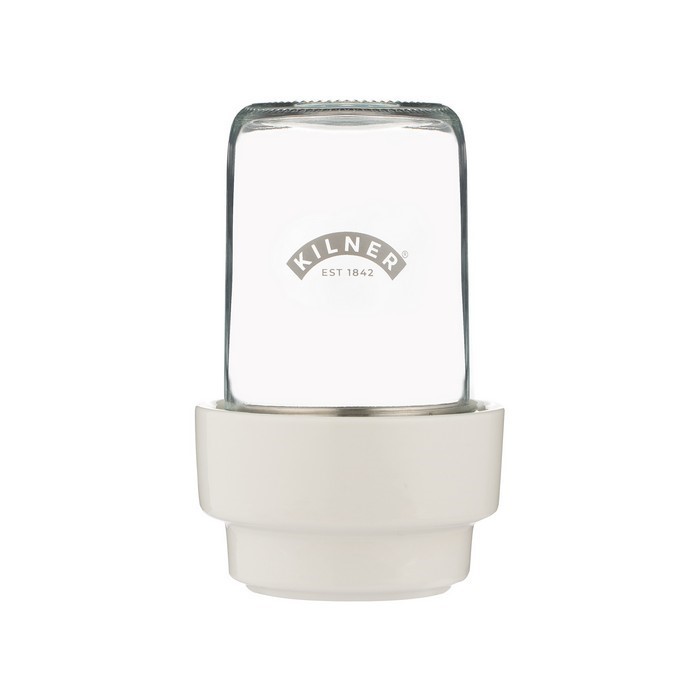 - złożona ze:słoika z szerokim otworem (0,5 l), podstawy ceramicznej, silikonowegopierścienia, stalowej wkładki, metalowej pokrywki, instrukcji,