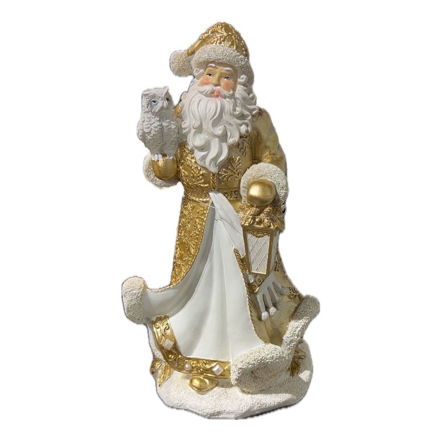 - Świąteczna dekoracyjna figura przedstawiająca Świętego Mikołaja trzymającego sowę Merry Moments,