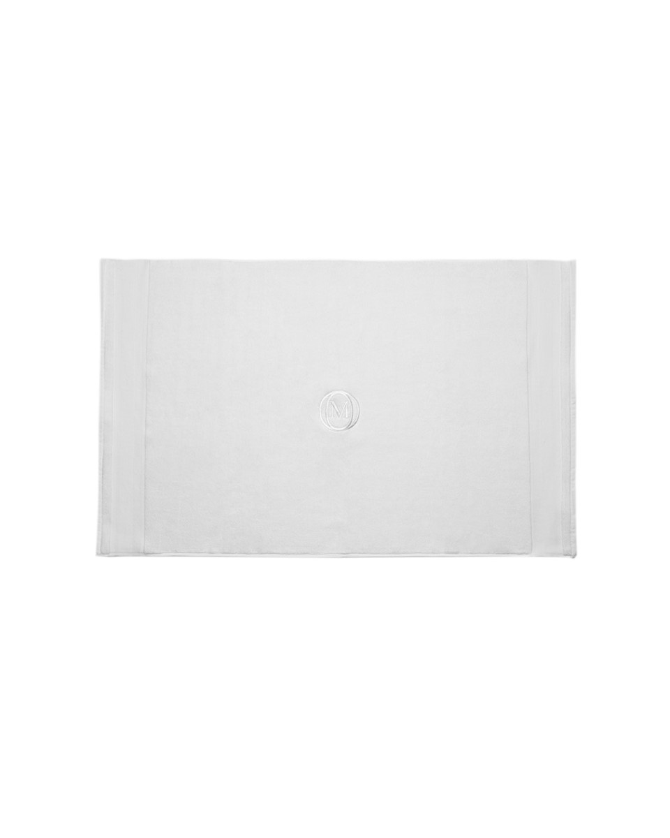 - Dywanik łazienkowy z białej organicznej bawełny frotte z żakardowymi białymi paskami w aksamitnym splocie chenille. Bawełna odwójnie czesana, wstępnie prana. Ręcznik posiada wszytą pętelkę do zawieszania w tym samym kolorze, podwójne przeszycia i zamknięte rogi.