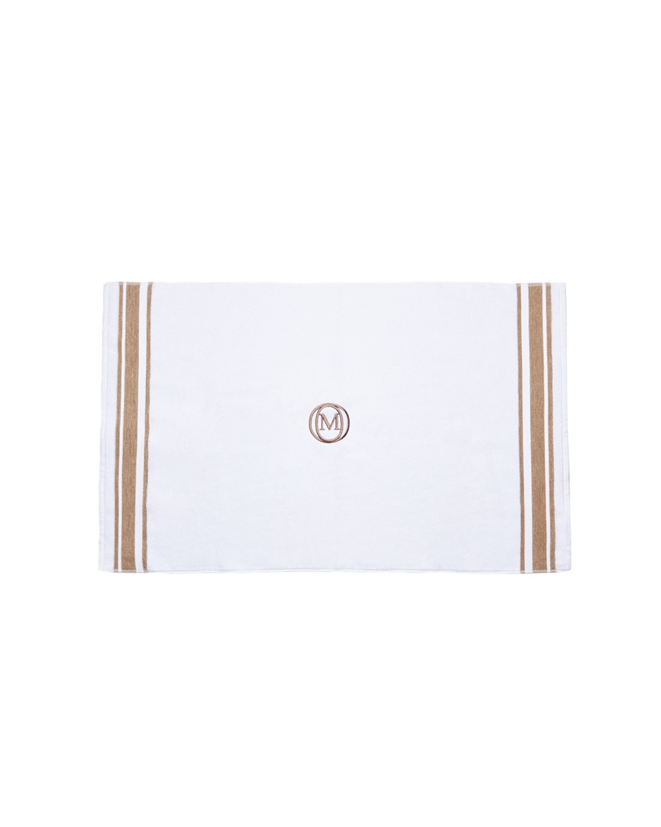 - Dywanik łazienkowy z białej organicznej bawełny frotte z żakardowymi kolorowymi paskami w aksamitnym splocie chenille. Bawełna odwójnie czesana, wstępnie prana. Dywanik posiada podwójne przeszycia w tym samym kolorze i zamknięte rogi.