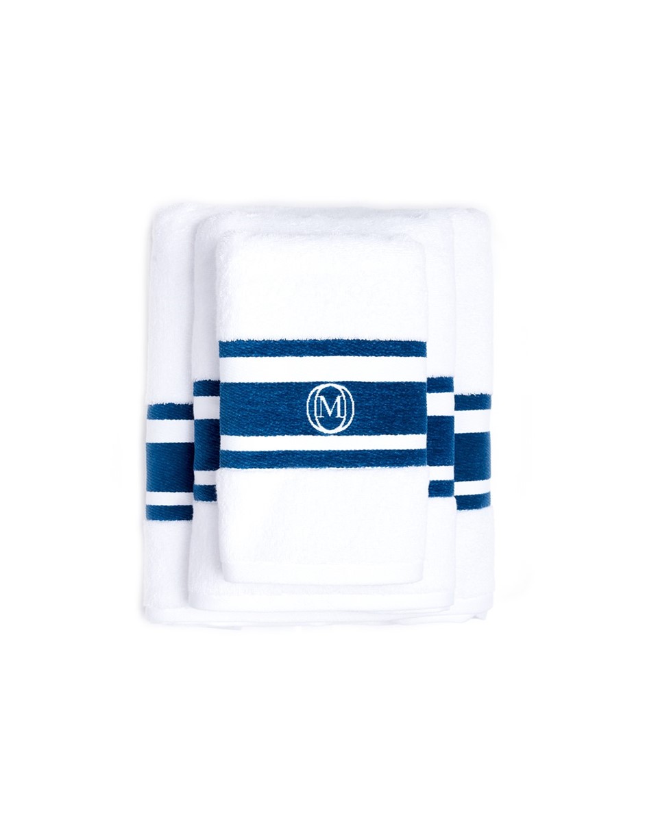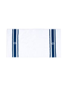 - Ręcznik duży kąpielowy z białej organicznej bawełny frotte z żakardowymi kolorowymi paskami w aksamitnym splocie chenille. Bawełna odwójnie czesana, wstępnie prana. Ręcznik posiada wszytą pętelkę do zawieszania w tym samym kolorze, podwójne przeszycia i zamknięte rogi.