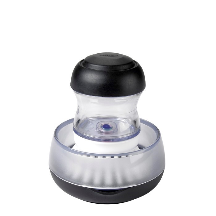 - szczotka posiada pojemnik na mydło lub płyn do bezpośredniego dozowania na włosie,