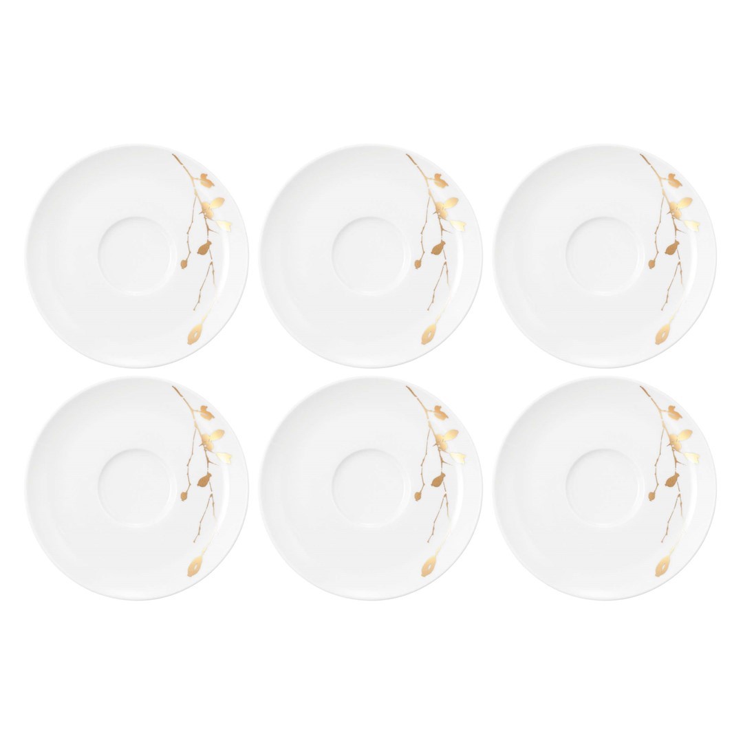 Dekor Golden Rose Hip zdobi spodek delikatnym, złotym motywem florystycznym, który współgra z pozostałymi elementami kolekcji. Porcelana najwyższej jakości zapewnia trwałość i odporność na codzienne użytkowanie. Idealnie wyprofilowany kształt sprawia, że filiżanki i kubki stabilnie na nim spoczywają, a stół pozostaje wolny od plam i zacieków.