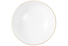 Gładki, biały kolor i delikatna złota linia wzdłuż krawędzi tworzą harmonijną całość. Wykonana z porcelany najwyższej jakości, miseczka jest trwała i odporna na codzienne wyzwania. Jej kompaktowy rozmiar i subtelny design sprawiają, że świetnie komponuje się z resztą zastawy, wprowadzając odrobinę wyrafinowanego stylu na Twój stół.