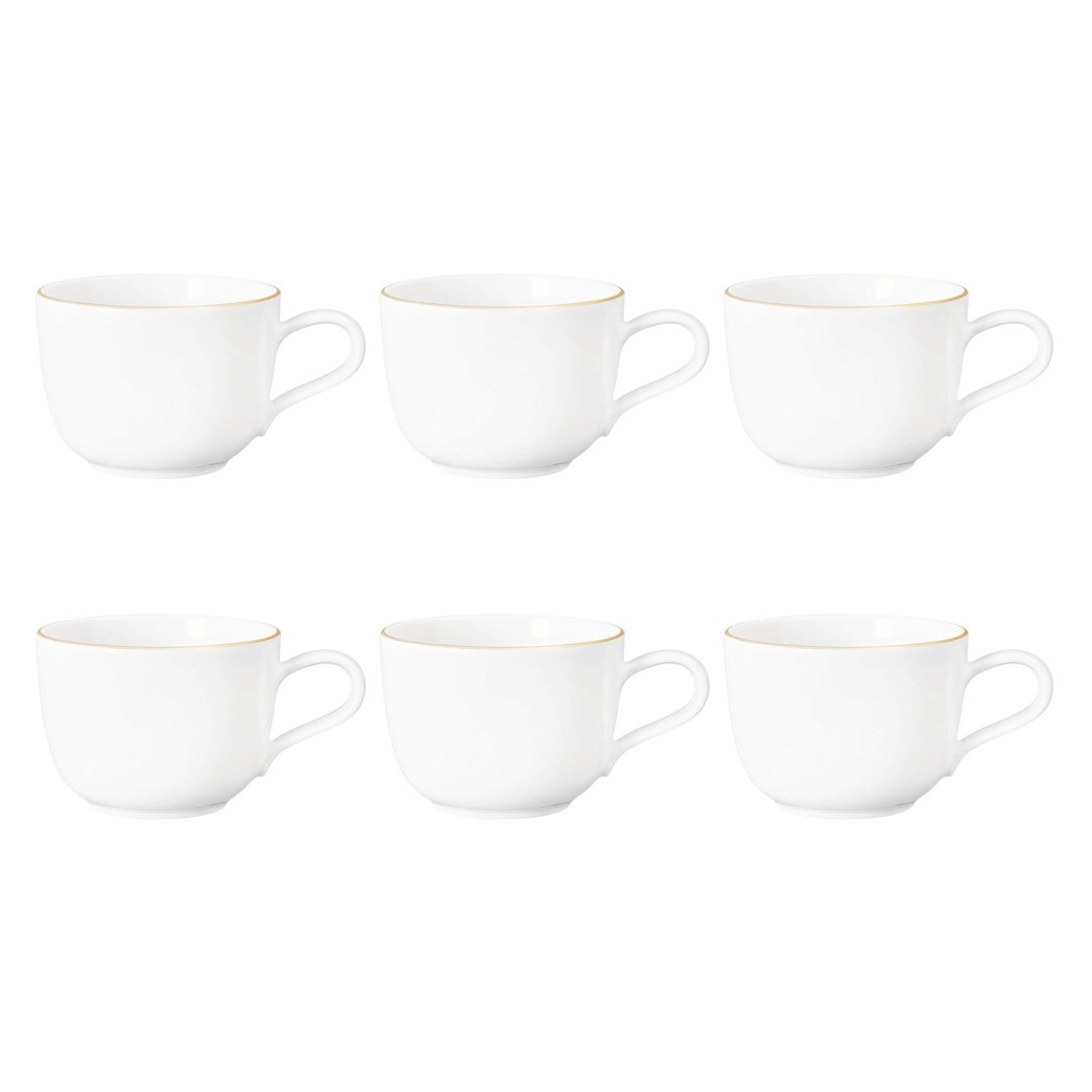 Klasyczna biel porcelany w połączeniu z subtelną złotą linią nadaje jej ponadczasowy charakter. Ergonomiczne ucho i odpowiednia pojemność filiżanki czynią ją doskonałą zarówno do porannej kawy, jak i popołudniowego cappuccino.