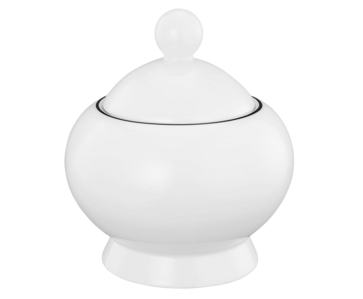 Wykonana z wytrzymałej porcelany, cukiernica LIDO charakteryzuje się delikatną czarną obramówką, która podkreśla jej nowoczesny, a zarazem ponadczasowy design. Porcelana jest odporna na uszkodzenia i łatwa w pielęgnacji, co sprawia, że zachowa swój piękny wygląd przez wiele lat. Pokrywka chroni zawartość przed wilgocią, wydłużając świeżość cukru. Cukiernica doskonale współgra z innymi elementami kolekcji, tworząc spójną i elegancką całość.