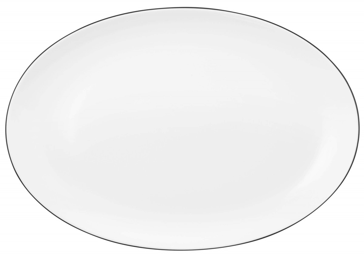Półmisek został wykonany z białej porcelany i ozdobiony subtelną czarną obramówką. Jest trwały i odporny na uszkodzenia. Jego zaokrąglone kształty, inspirowane włoskim stylem, przywołują wspomnienia z wakacji nad wodą. Łatwy do czyszczenia, półmisek zapewnia komfort użytkowania przez wiele lat.
