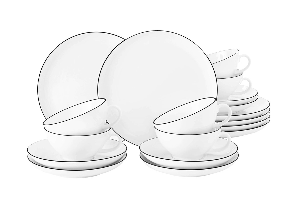 Biała porcelana z subtelną czarną obramówką nadaje naczyniom elegancki, ponadczasowy charakter. Zaokrąglone kształty sprawiają, że są one wygodne w użytkowaniu, a ich trwałość zapewnia długowieczność serwisu. Zestaw do herbaty LIDO pasuje do różnych aranżacji, wnosząc klasyczny styl na Twój stół. Dzięki swojej funkcjonalności, komplet doskonale sprawdzi się zarówno na co dzień, jak i na bardziej formalne spotkania.