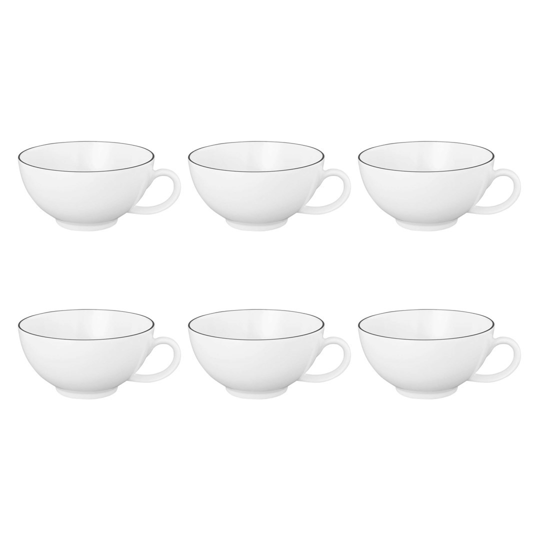 Biała porcelana o doskonałej trwałości zapewnia długowieczność użytkowania, a subtelna czarna obramówka sprawia, że filiżanka wygląda nowocześnie, zachowując przy tym ponadczasowy styl. Idealnie pasuje do innych naczyń z kolekcji LIDO, tworząc spójny zestaw, który doskonale sprawdza się podczas codziennych, jak i bardziej formalnych spotkań.