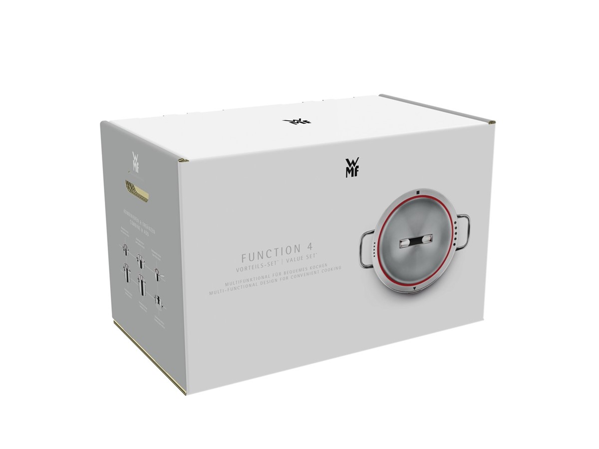 - Materiał: stal nierdzewna 18/10 typu Cromargan®, szkło z silikonem (pokrywki)