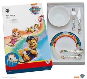 - w komplecie talerz, miska, łyżka, łyżeczka, nóż i widelec,